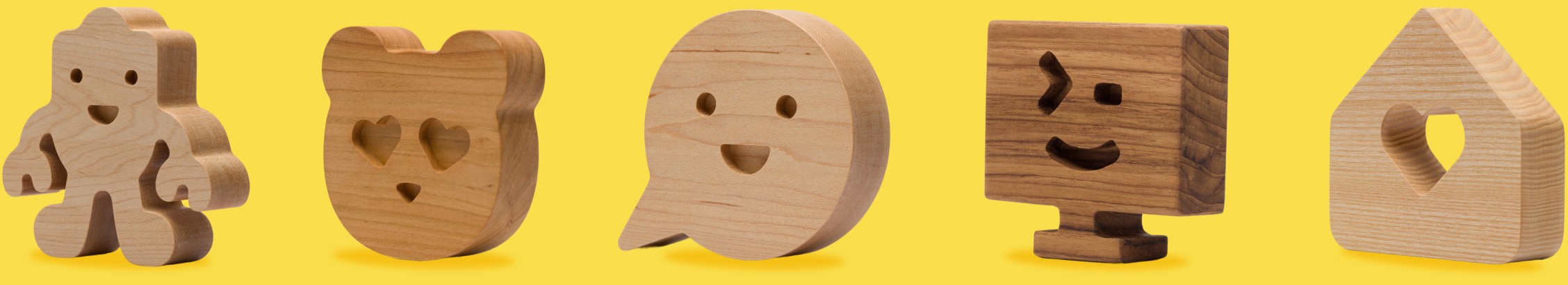 Hello, friend! We’re your icon buddies, crafted from wood to bring a little joy to your space :-)